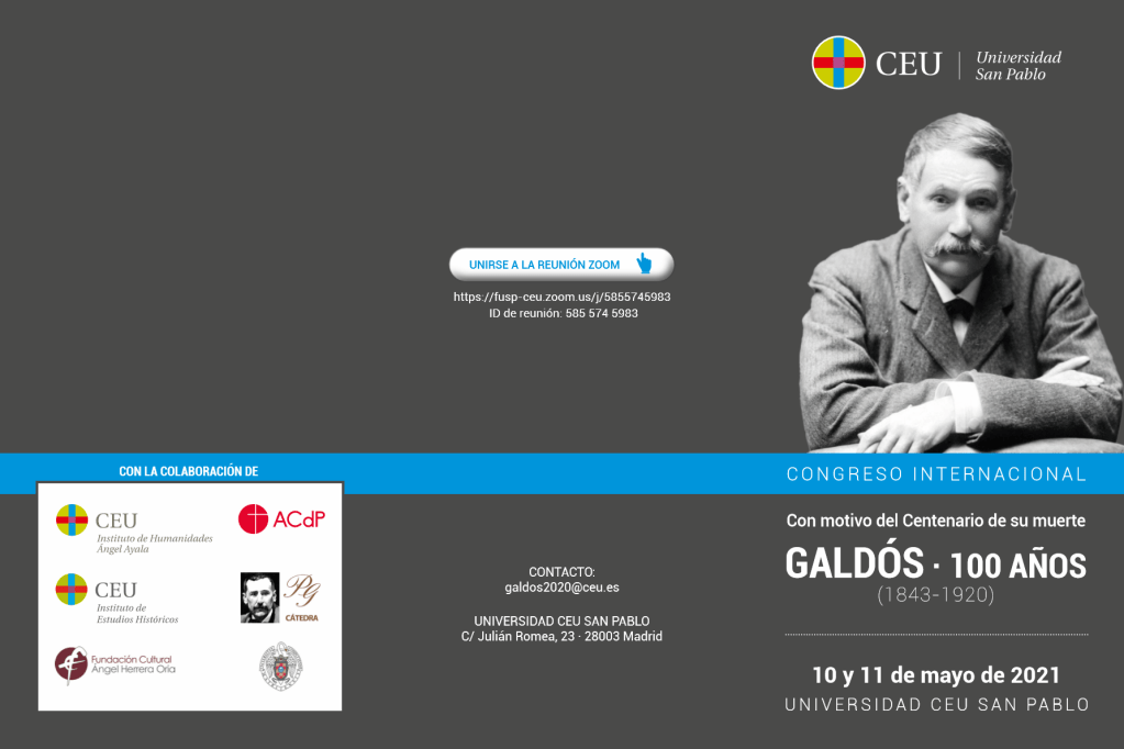 Publié : 08/05/2021 Classé dans : Didactique | Tags: Arte, Congreso, Lengua, Literatura Commentaires fermés sur Galdós – 100 años (1843-1920). Congreso internacional.